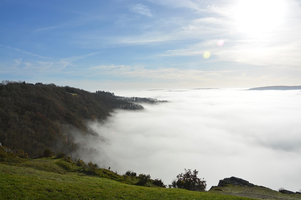 Refroidissement de l’air : L’air se refroidit naturellement en montant dans l’atmosphère. Cela peut se produire de différentes manières, mais le plus souvent, l’air est forcé de s’élever en raison de processus tels que la convergence des masses d’air, le soulèvement orographique (lorsque l’air est poussé vers le haut par des reliefs tels que des montagnes), ou le front météorologique.