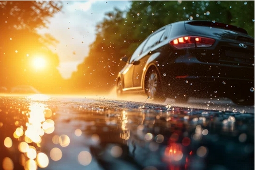 Effet de brillance : lorsque la lumière du soleil est réfléchie de manière cohérente par la surface mouillée de la route, elle crée une surbrillance ou un éclat perceptible, particulièrement visible pour les conducteurs et les piétons.
